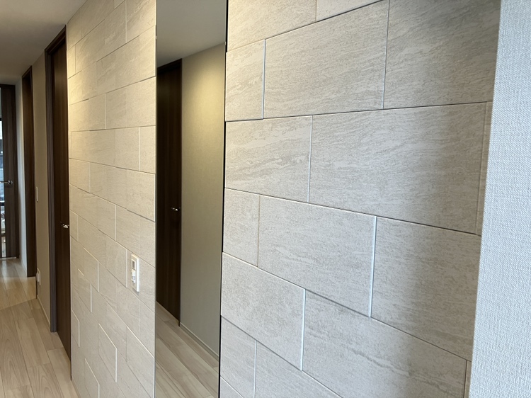 ヴァルスロックは厚さが厚いタイプと薄いタイプがあるので、凹凸感がでて特に玄関の照明が当たると表情が豊かになります。