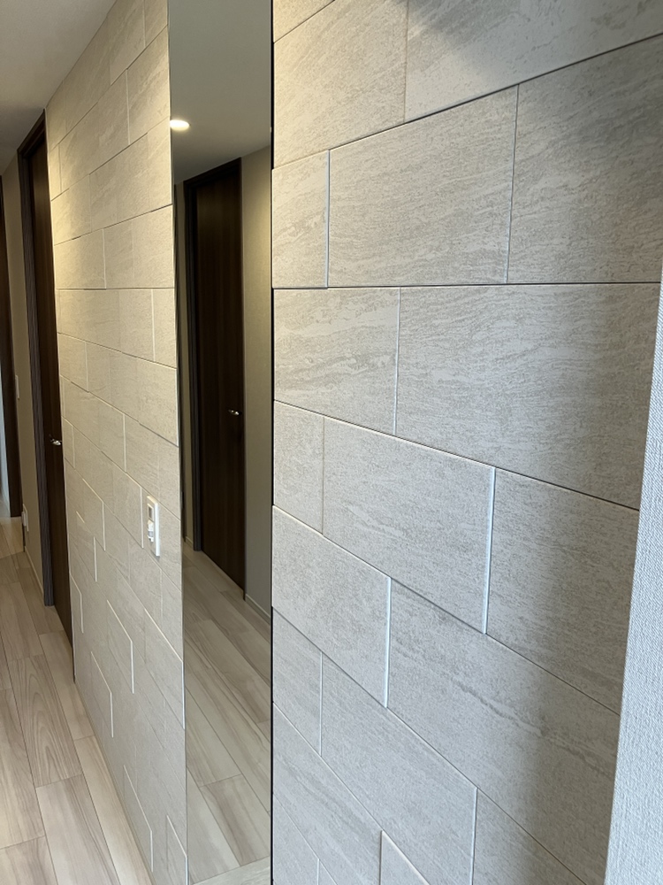 マンションの玄関にはもはや大定番でもある、エコカラット+鏡施工致しました。