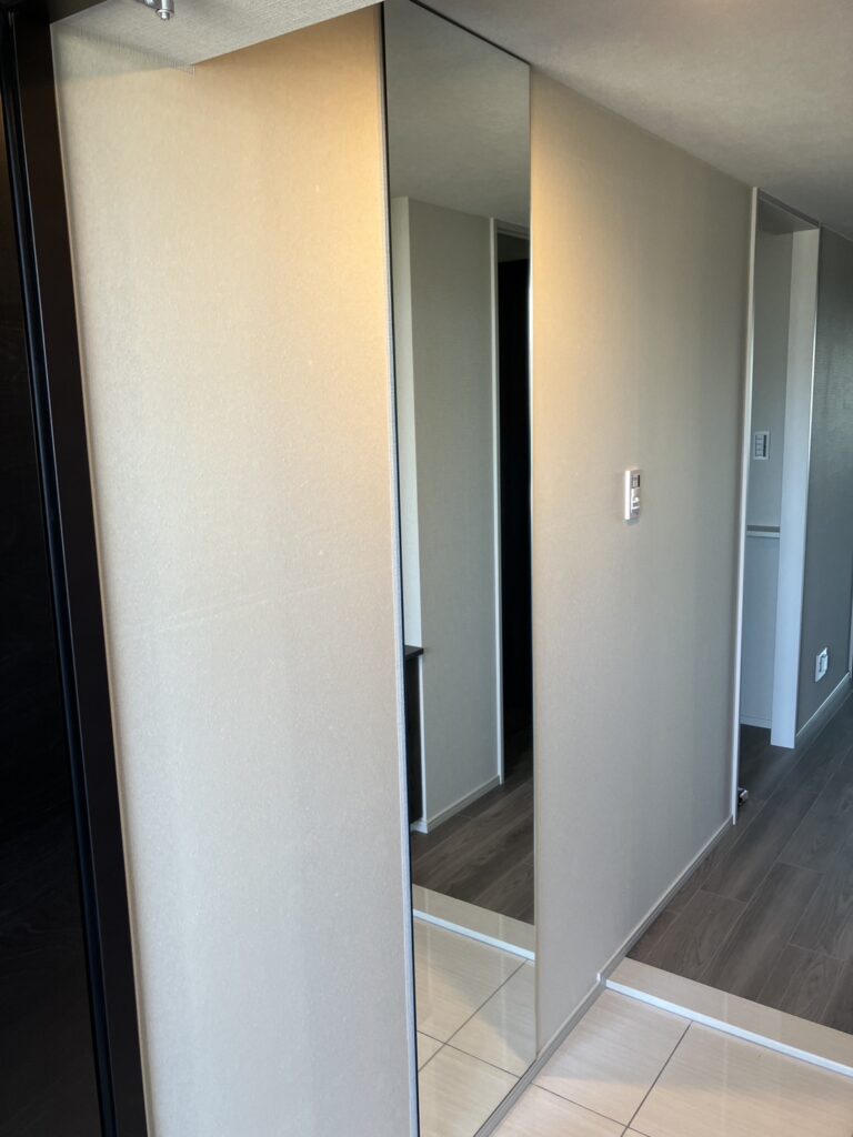 今回も人気の定番パターン、鏡とセットの施工です。