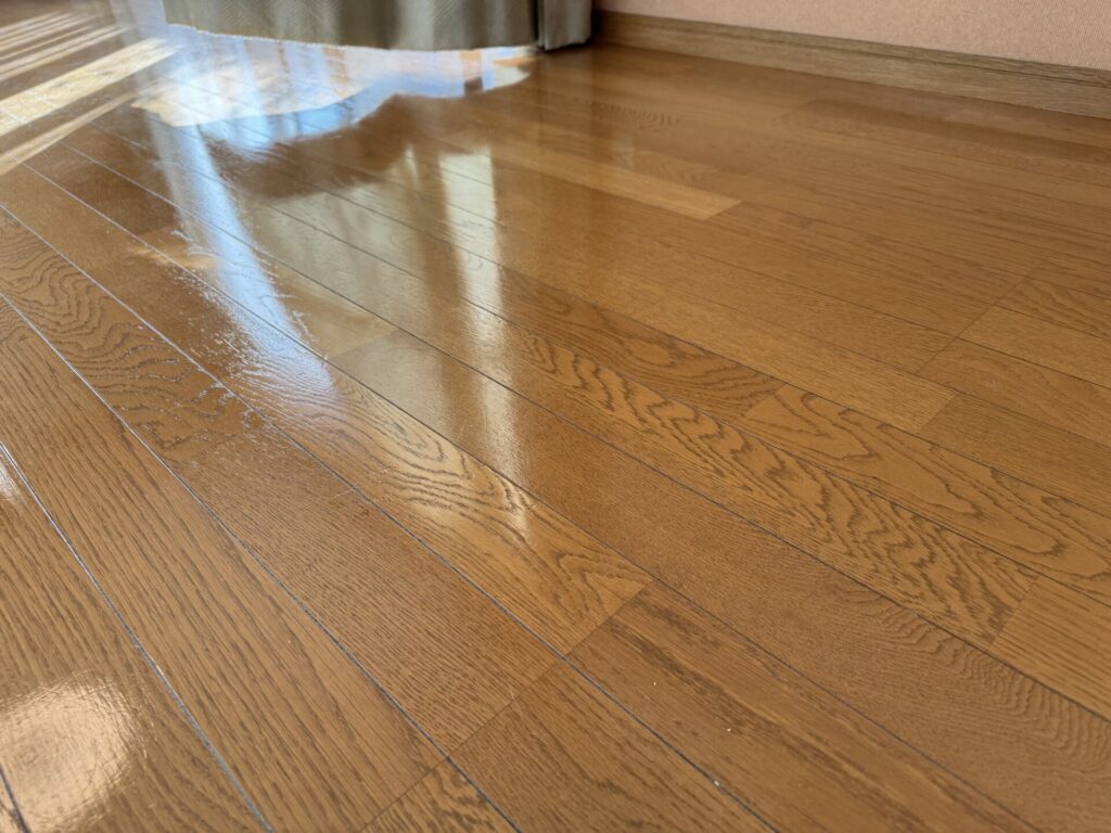 汚れが蓄積されたワックスが一皮むけて、フロアコーティング【シリコンコーティング】を施工してピカピカに仕上がりました。