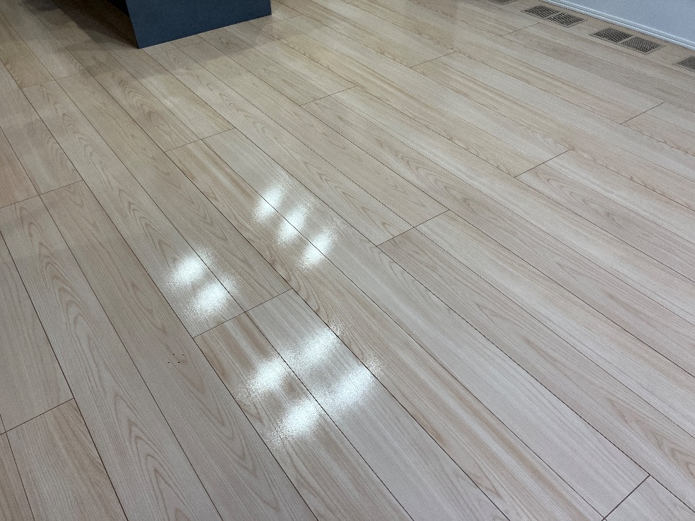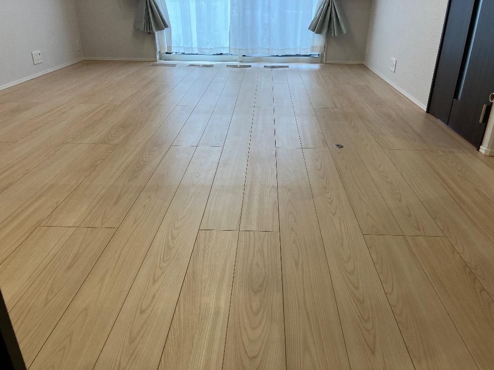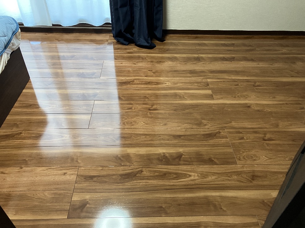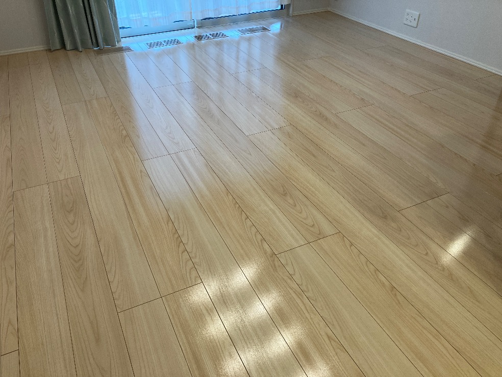当日は家具の移動から開始してまずはワックス剥離作業。このあたりの写真は省略しまして、いきなり施工後完成写真です。